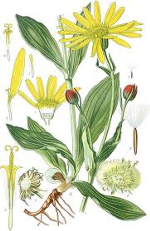Arnica works as an analgesic, anti-inflammatory, circulatory stimulant, and vulnerary. It helps with arthritis, buises, joint paint and stiffness, muscle pain and stiffness, sprains, strains, swelling, torn ligaments.